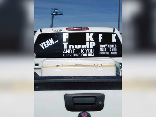 I’m assuming these replaced her “coexist” and rainbow flag bumper stickers. She probably has plenty of room for stickers on her passenger seat because there’s only a small cat riding where a husband normally would...