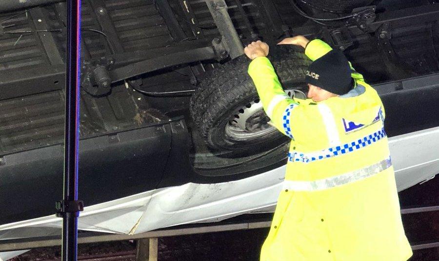 British police officer praised for saving van dangling off bridge http://cbsn.ws/2AOtUSE pic.twitter.com/sfRRvfuZto