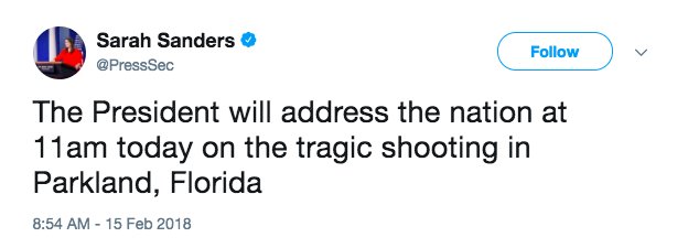 This was after his Tweet blaming the victims for not "reporting" the shooter earlier on. His address ought to be very inspiring. Not.