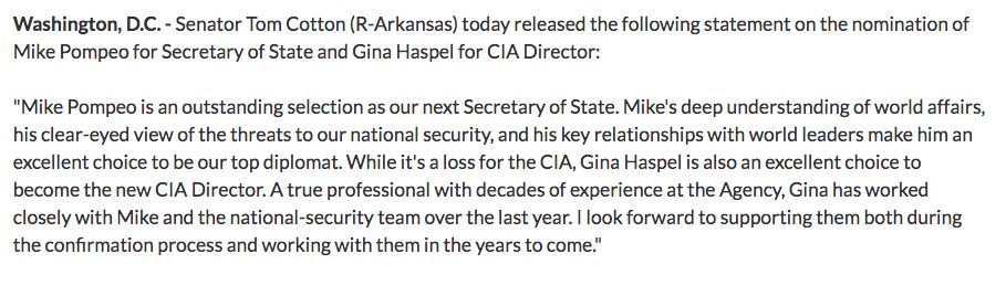 Well, if I liked Pompeo before, this just killed it. Cotton needs to go.