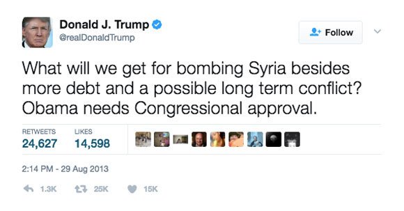 @realDonaldTrump Why. You wanted to ban the citizens of Syria from entering out country. Putting our men and women at risk because your administration is a disaster.#ResignTrump -