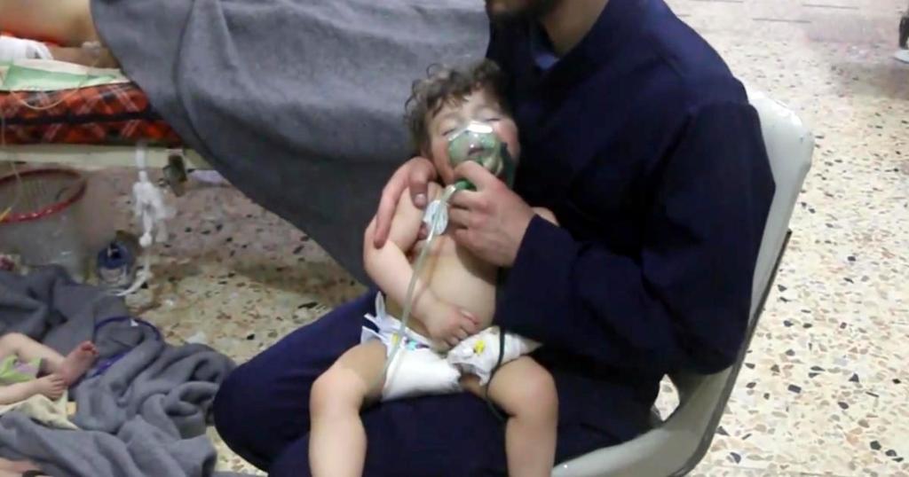 So baby’s sake, I hope this is fake. The baby’s cheeks are healthy red with no skin damage. I do not believe this baby was exposed to chemical weapons.