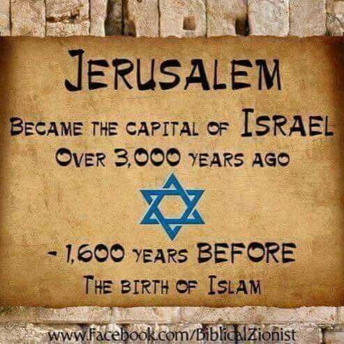 So what years was Jerusalem a capital of Palestine? When was there even a Palestine? Jerusalem was Israel's capital 3000 years ago and remains so.pic.twitter.com/ejuCuL8quF
