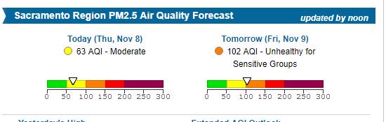 Noticed smoke in the air in #Sacramento? It's from the #CampFire in Butte County. Friday's AQI forecast looks to be unhealthy for sensitive groups. More: http://bitly.com/2OzlroK pic.twitter.com/8RcQJ96FYa