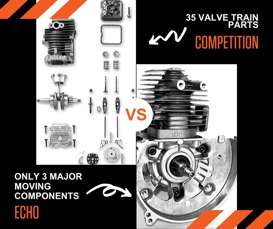 Every moving part is a part to maintain, clean and possibly repair. The ECHO two-stroke engine has only 3 moving parts to make your life easier.