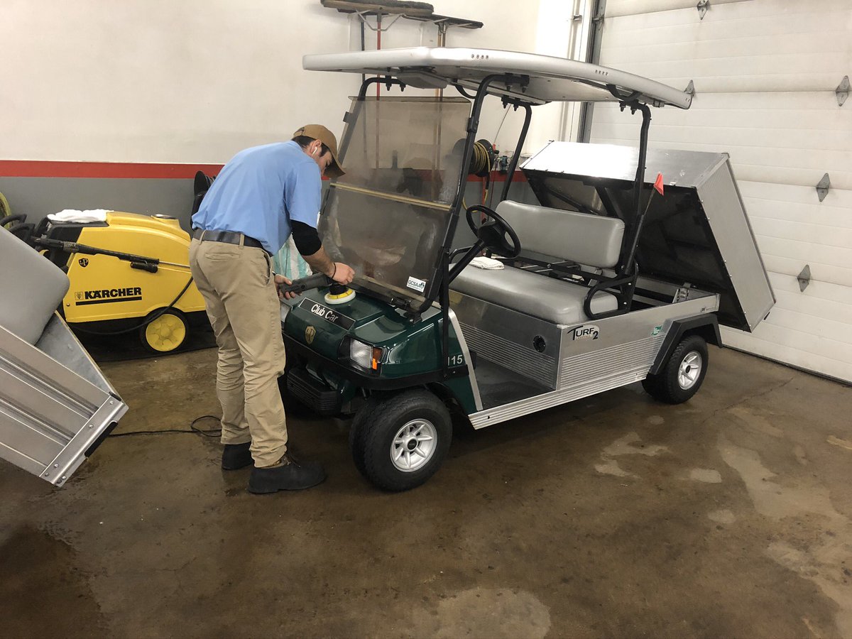 Taylor is giving the Carryall fleet their annual detail job to help keep the 20 year old vehicle’s looking almost as good as the 5 year olds.