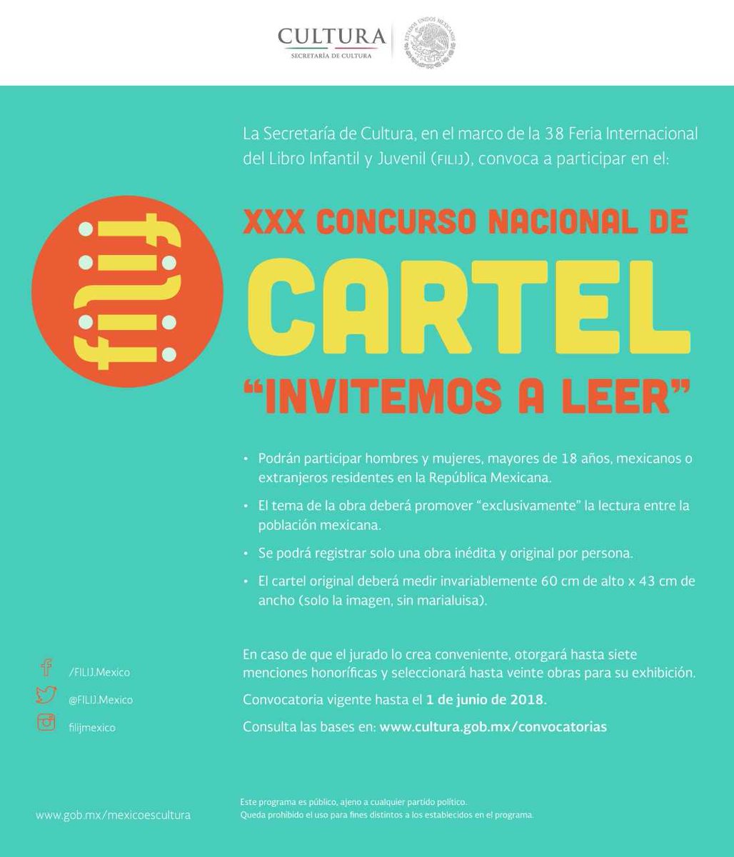 ¡Aún estás a tiempo para participar en la convocatoria del XXX Concurso Nacional de Cartel "Invitemos a Leer"!