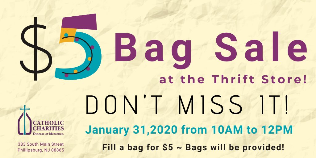 Don't miss the $5 Bag Sale from 10AM to 12pm at the Thrift Store! Fill a bag for $5 Bags will be provided! http://ow.ly/mDum30q9M5S pic.twitter.com/xmURctaPdf