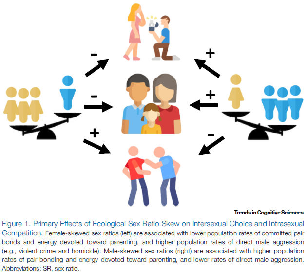 "ratio of men to women in a given ecology can have profound influences on a range of interpersonal processes, from marriage and divorce rates to risk-taking and violent crime" https://www.sciencedirect.com/science/article/abs/pii/S1364661319302839 …pic.twitter.com/l2OQ3yZFNv