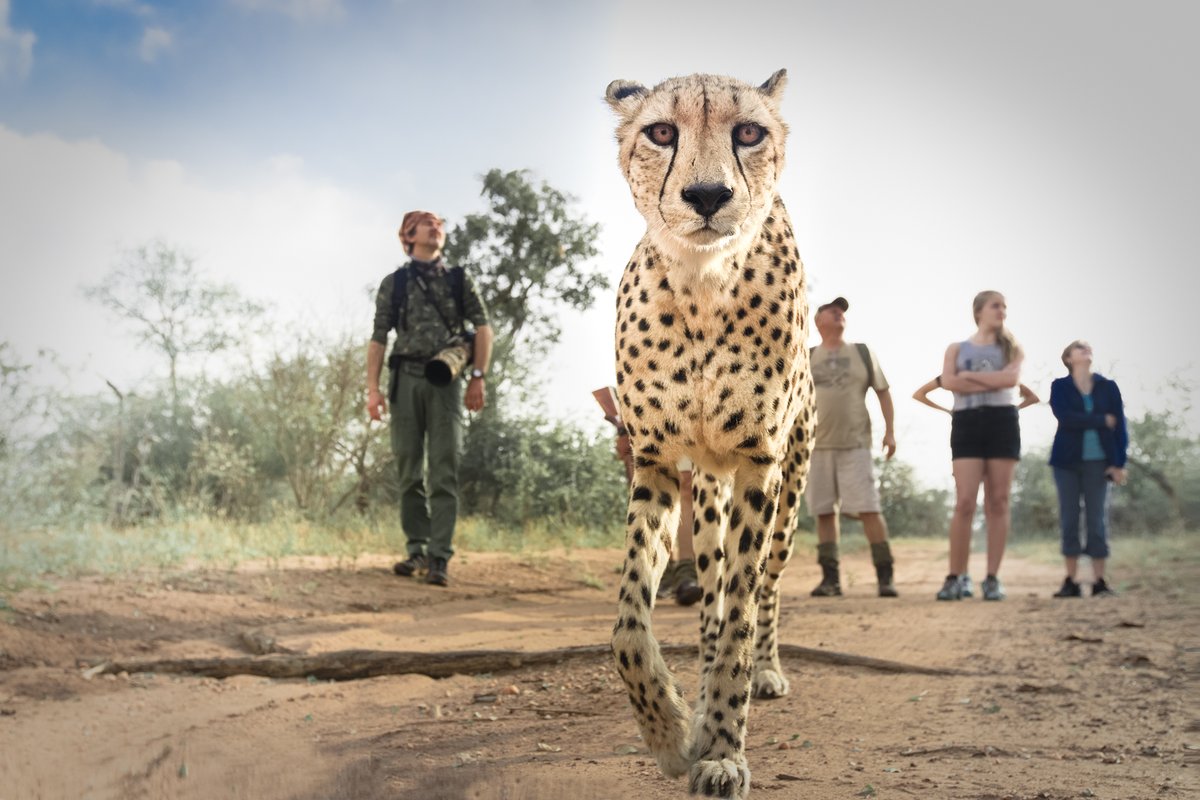 #cheetahs also grew up with people, but the lodge owners encouraged them to hunt, so they only visited the lodge occasionally as a safe place to rest. One#cheetah became close with one of the rangers and I watched her escort him during a#bushwalk.' -#JuliaWimmerlinpic.twitter.com/XQ77xlUNCY