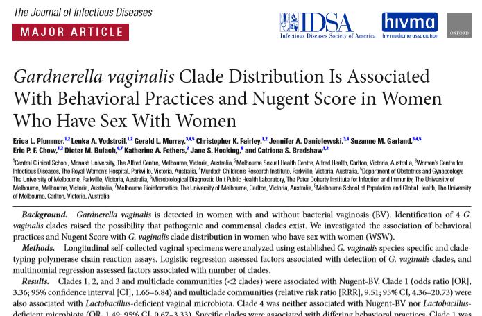 @ericalplummer in The Journal of Infectious Diseases on#Gardnerellavaginalis and#behavioralpractices in women who have sex with women#WSW