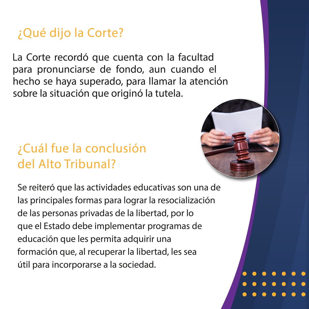 | Corte recordó que el Estado debe implementar en los establecimientos penitenciarios programas de educación como parte del proceso de resocialización.