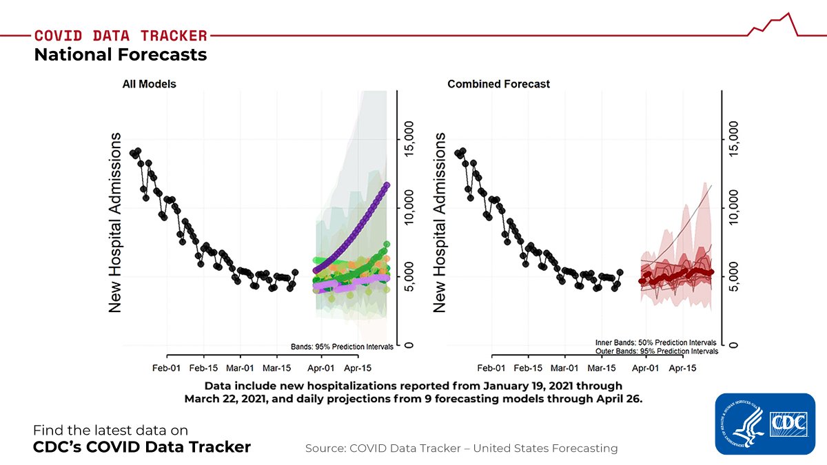 As of August 15, 2022, national forecasts predict 2,600–9,700 new #COVID19 hospitalizations will likely be reported on September 9. More: bit.ly/CDC_HForecast.
