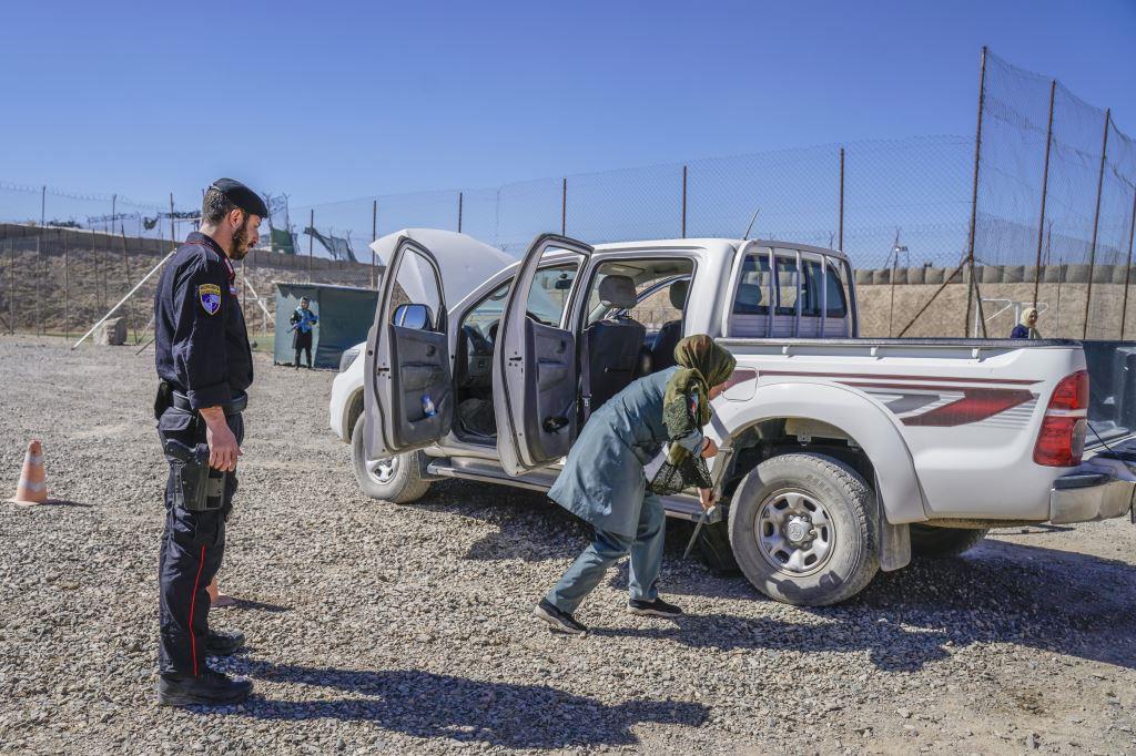 Afghan female police officers, trained by Italian Carabinieri advisors, learn how to detect improvised explosive devices (IED).