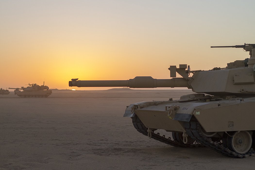 An M1 Abrams scans its sector at the Udairi Range Complex in Kuwait, Dec. 8. The