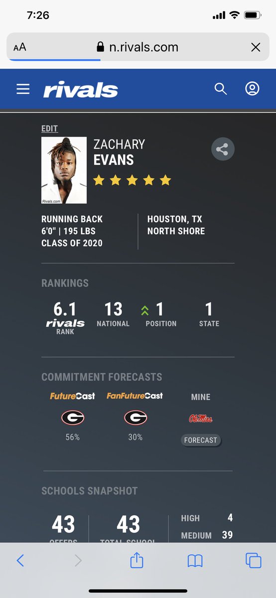 Long time Rivals Analyst Mike Farrell picks Zach Evans to land at Ole Miss with Lane Kiffin.https://twitter.com/rivalsmike/status/1224489357765115906 …