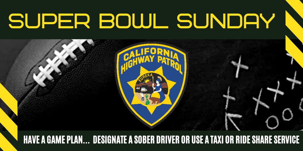 #SuperBowl Sunday? Our plan is to intercept impaired drivers from California's roadways before they injure or kill themselves or innocent people out there with them.#DesignateAdriverhttps://twitter.com/CHP_Valley/status/1223347163389784064 …