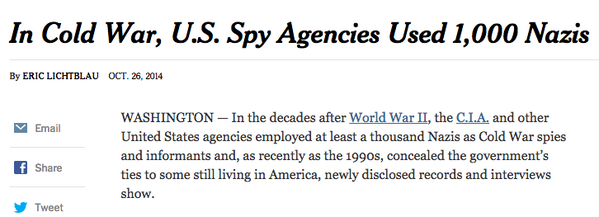 Nazis! RT @CIA: ICYMI: The people and principles behind @CIA http://www.cbsnews.com/news/cia-twitter-account-an-inside-look-cia/ … via @CBSThisMorningpic.twitter.com/YVFdb627MK
