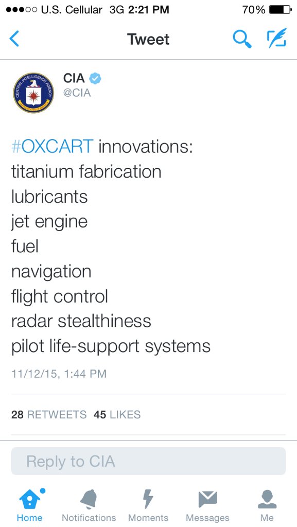 @CIA Assassinations/coups of democratically elected foreign leaders. Yeah you guys are innovative all right.Thanks. Twitter will use this to make your timeline better. UndoUndo