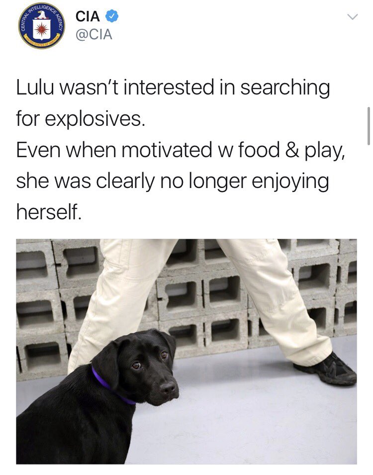 Our trainers’ top concern is physical & mental well-being of K9s. They made difficult decision & did what’s best for Lulu: stop her trainingpic.twitter.com/Ss9y9LpE9q