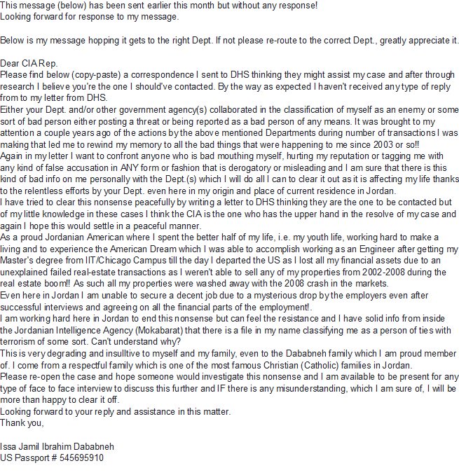 This message (below) has been sent earlier this month but without any rrsponse! Looking forward for response to my message. Below is my message hopping it gets to the right Dept. If not please re-route to the correct Dept, greatly appreciate it. Issa Jamil Ibrahim Dababneh USpic.twitter.com/un4NwoRvRj