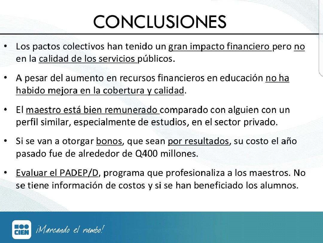 Estas son las conclusiones que presentamos hoy a la Comisión de Finanzas @CongresoGuate respecto a la ampliación presupuestaria y #PactosColectivio de #EducaciónGTpic.twitter.com/Fy2s0FpUHg