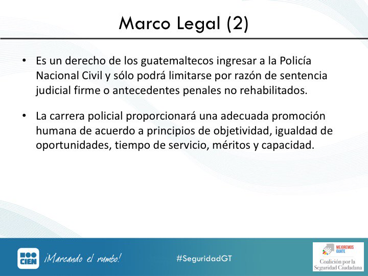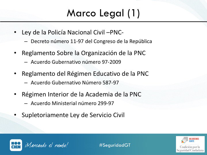 En #SeguridadGT continúa la presentación @FJQuezadaS investigador del CIEN y abogado, quien presenta el marco legal en el que se basa la carrera policial:pic.twitter.com/imPm5bOEZV