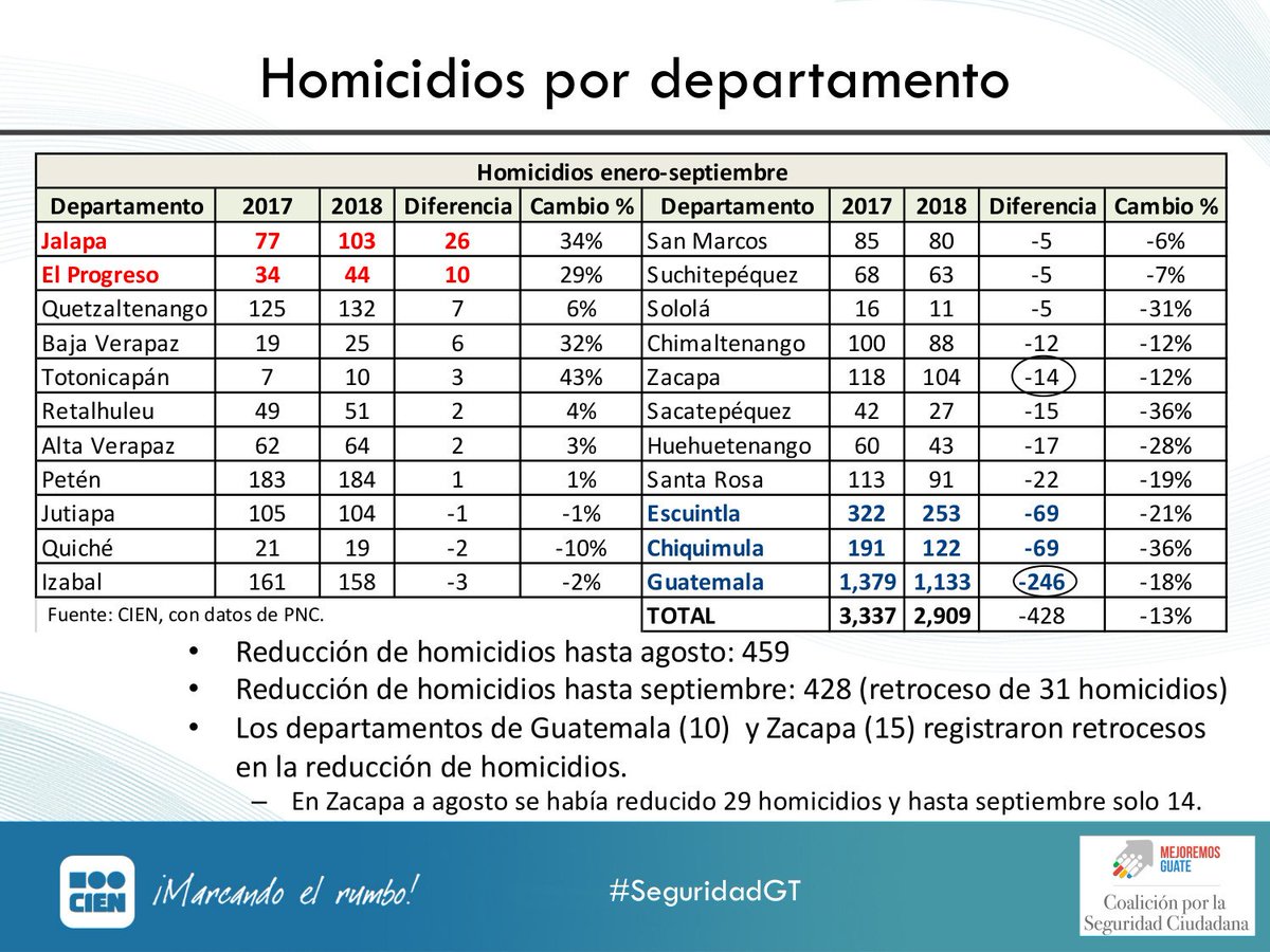 "Si bien la tasa de homicidios en general aumentó levemente, los departamentos de Guatemala, Chiquimula y Escuintla registran mejoras en la cantidad de homicidios, ya que han disminuido" explica @walter_menchu sobre #SeguridadGT:pic.twitter.com/gXUVTFBK0q