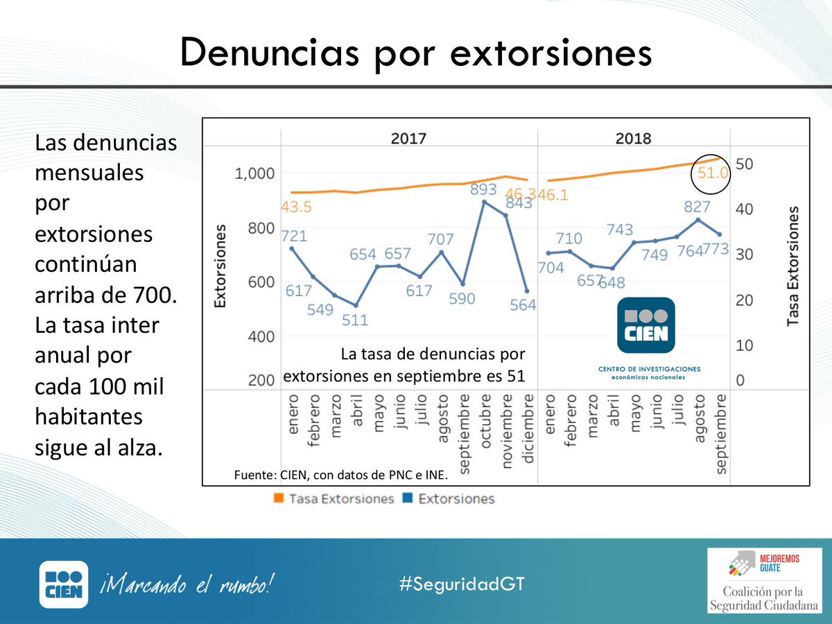 "La cantidad de denuncias por el delito de extorsión no ha bajado de 700 en los últimos cinco meses" indica @walter_menchu. La tasa por cada 100mil habitantes es un indicador de largo plazo y ayuda a tomar en cuenta el largo plazo en #SeguridadGT para tomar mejores decisiones:pic.twitter.com/equ4bSxs2C