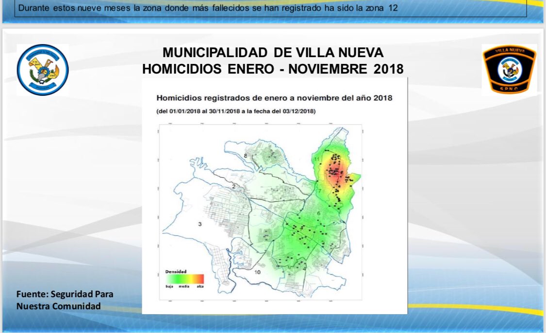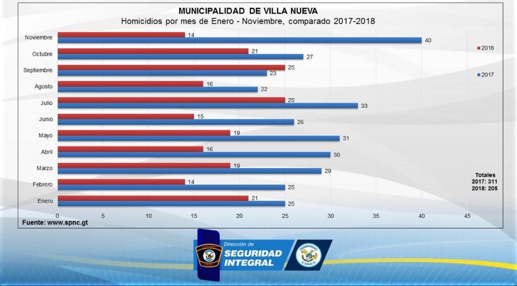 @MuniVillaNueva @SPNCVILLANUEVA se ha logrado una reducción en homicidios del 34% del 2017 al 2018 hasta Noviembre y un acumulado del 42% entre el 2011 y 2018 en esta gestión municipal. Veremos como cierra el año hoy 31 de Diciembre y así el 2018.pic.twitter.com/z3K7dTWk0R