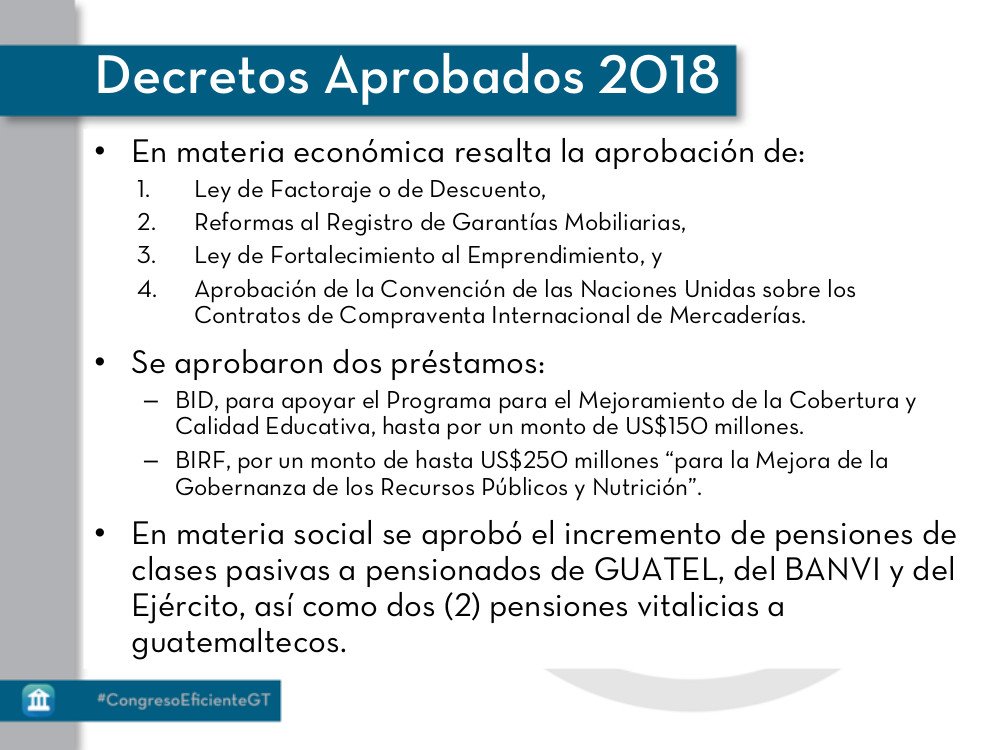 "Podemos observar que hay un cierto sesgo a trabajar una agenda política y durante el año 2018, de los 25 decretos aprobados, solamente dos cumplieron todos los requisitos establecidas en la LOOL" indica @anzuetob sobre #CongresoEficienteGT y recomienda considerar reforma a LOOLpic.twitter.com/BQ7CMORSF8