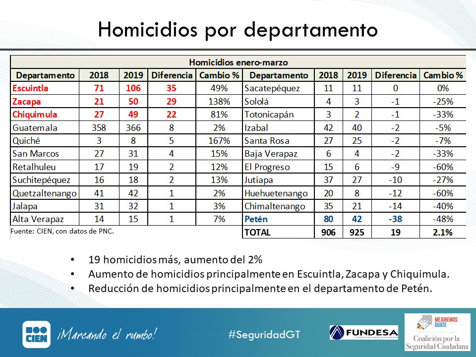"Revisar los datos por departamentos es útil para detectar focos de violencia y aumentos en la tasa y cantidad de homicidios, para poder planear políticas públicas que mejoren la seguridad de los guatemaltecos" explica @walter_menchu en #SeguridadGTpic.twitter.com/UYBzyepv97