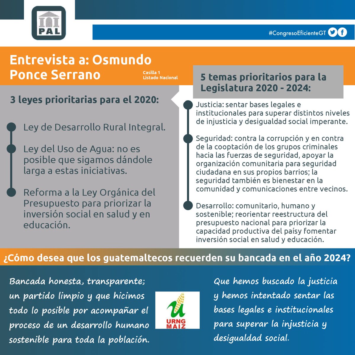 Continuamos el seguimiento al tema Legislativo, con las entrevistas del PAL - Programa de Apoyo al Legislativo del CIEN. Entrevista 13/20 a @URNG_GT