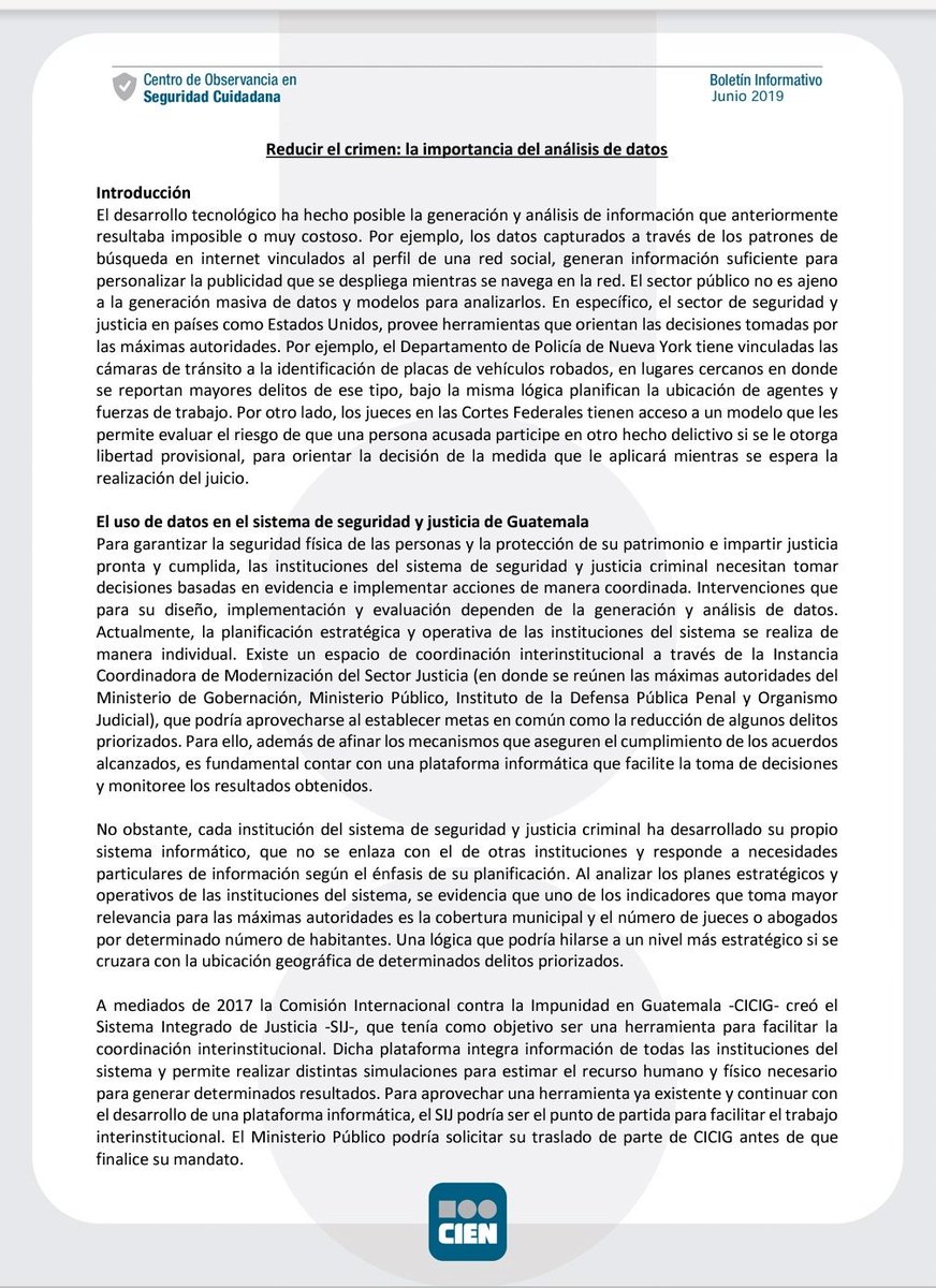 Compartimos un resumen del tema del mes respecto a la importancia de los datos e información para reducir el crimen en #Guatemala