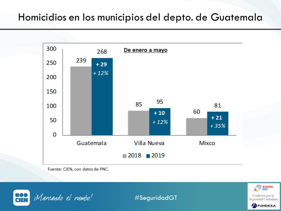 "En Mixco, Villa Nueva y Guatemala suceden 1 de cada 4 homicidios del país. Notamos que este mes han subido en las tres áreas geográficas" indica @walter_menchu en #ALas845