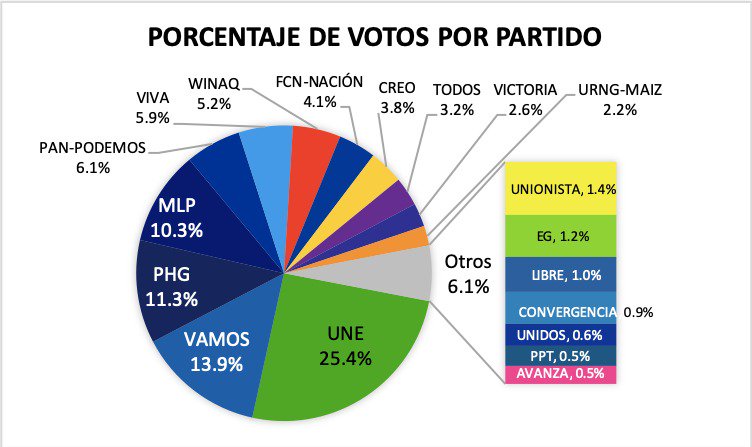 ¿Cómo se distribuyeron los votos de los binomios presidenciables en la primera vuelta de las #Elecciones2019GT?