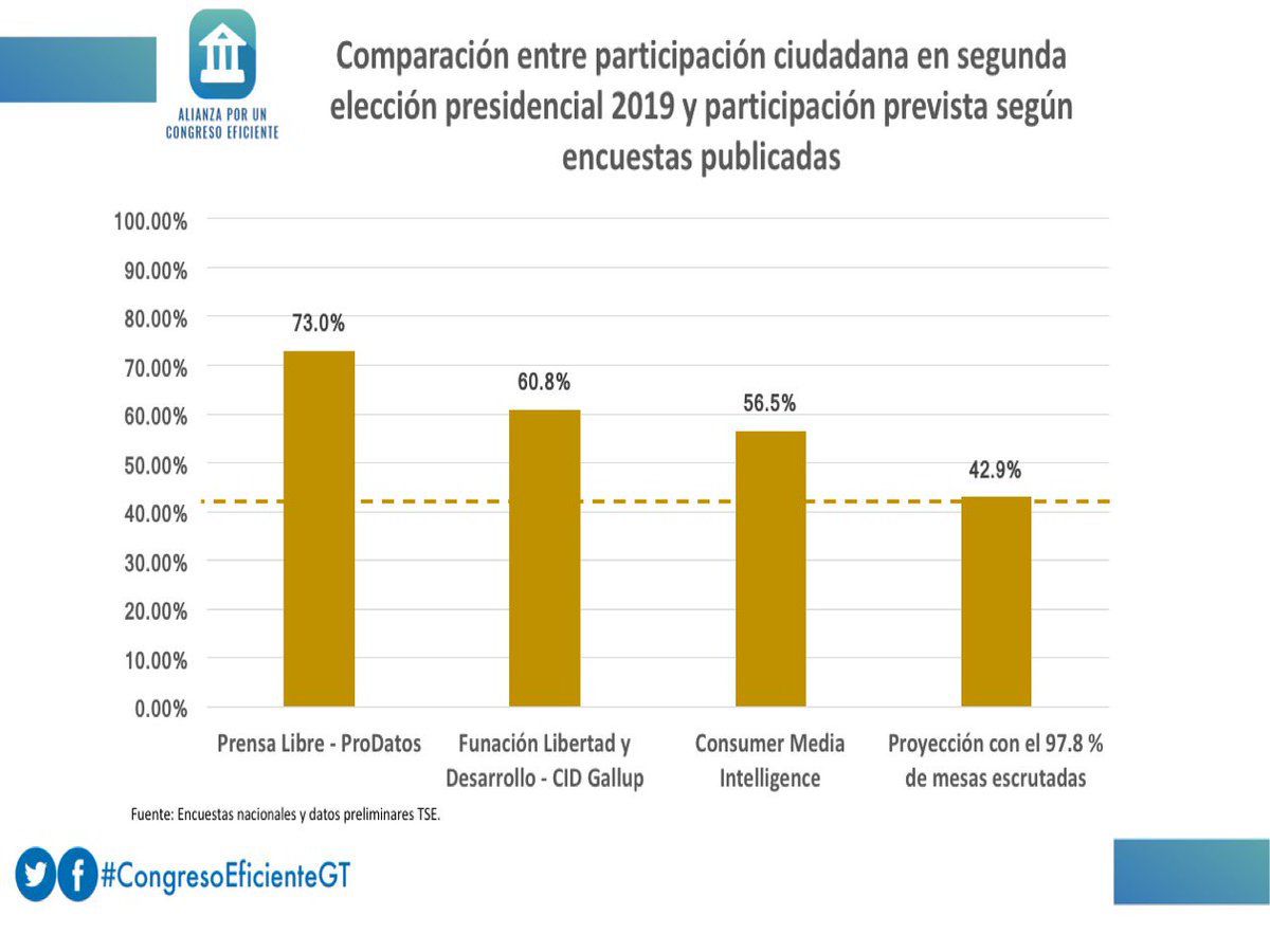2 de 3 estuvieron dentro de su margen de error en cuanto a resultados. Las 3 dieron datos de participación muy diferentes a la realidad. #Elecciones2019GT pic.twitter.com/AXglQMNYJS