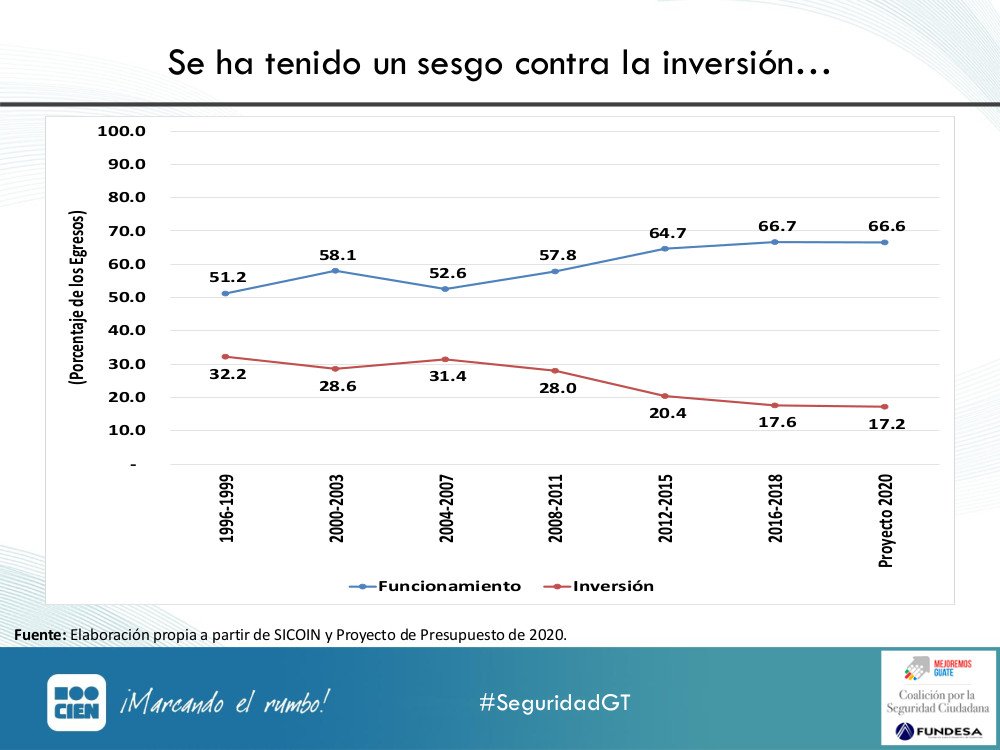 "En cuanto al gasto público, se tiene un sesgo contra la inversión pues la mayoría de fondos se destinan a gastos en funcionamiento" ilustra @jlavarre en #Presupuesto2020GT