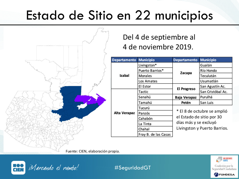 "El Estado de Sitio se llevó a cabo en septiembre y octubre 2019 en 22 municipios" comienza su intervención @rleiva2, consultor del CIEN en #SeguridadGT:pic.twitter.com/xm7poDu6jJ