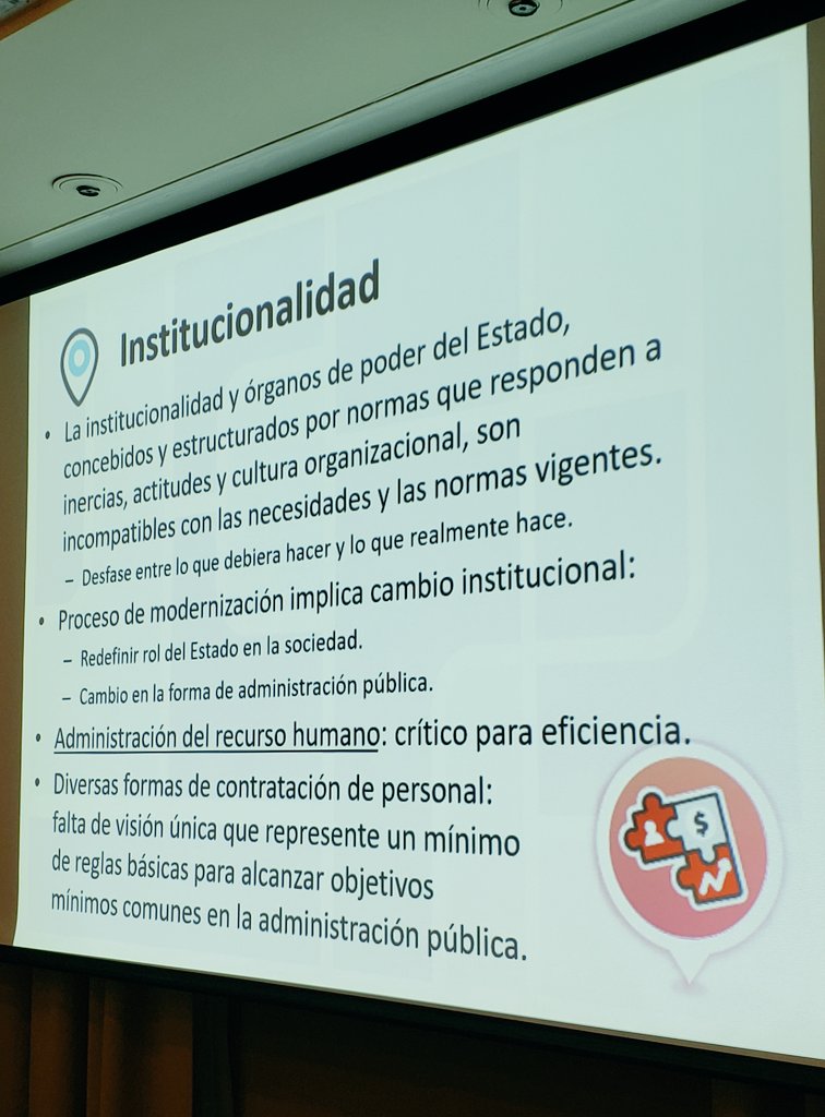 .@anzuetob toca el tema de Servicio Civil. Inicia comentado una definición de lo que es institucionalidad. Comenta: "Hay un desfase entre lo que es y lo que debiera ser".