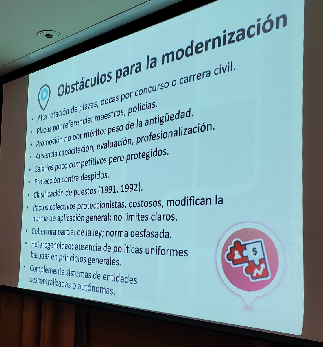 .@anzuetob señala los obstáculos para modernizar el Servicio Civil en #Guatemala, se premia la referencia, antigüedad, y pactos colectivos, y no el mérito.