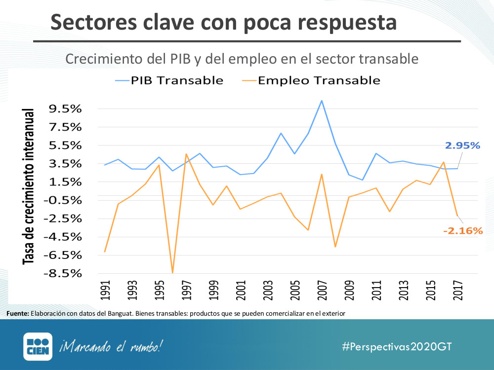 "El seguir creciendo basados sólo en inercia no va a resolver los problemas estructurales que tenemos, como la brecha de empleo, pues los sectores que crecen no se traducen en más empleo necesariamente" @jdcasasola en #Perspectivas2020pic.twitter.com/tX0iC6NUKv