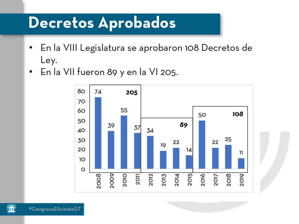 En cuanto a la actividad legislativa, se aprobaron 108 Decretos de Ley: