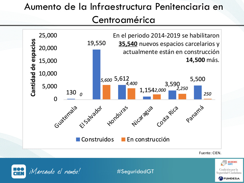 Nuestros países vecinos sí invierten en nueva infraestructura carcelaria. Guatemala ha habilitado sólo 130 nuevos espacios en los últimos cinco años, contribuyendo al 0.4% del total centroamericano. ¡Urge priorizar el Sistema Penitenciario y su infraestructura!