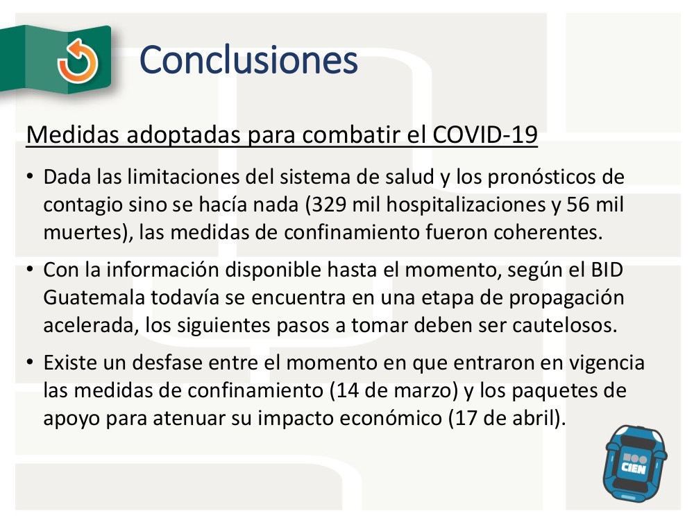 Conclusiones medidas adoptadas: 1. medidas de confinamiento fueron coherentes 2. todavía estamos en etapa de propagación acelerada según BID, debemos ser cautelosos