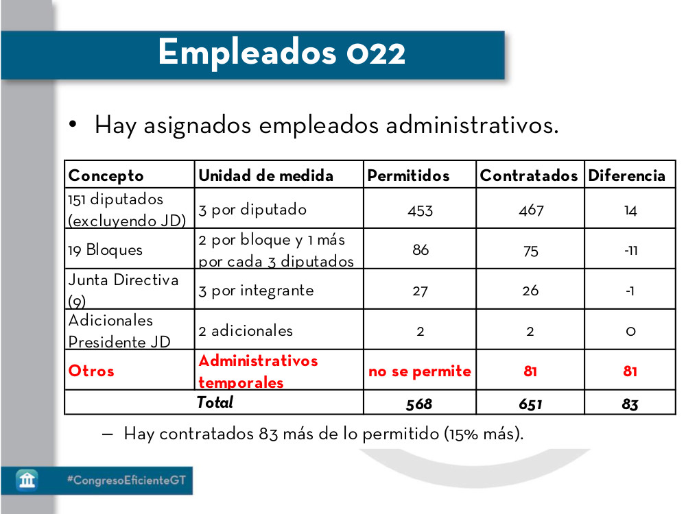 El renglón 029 no permite contratar personal para tareas administrativas, pero esto se incumple en el Congreso, advierte @walter_menchu. En total hay 111 empleados contratados para funciones que no corresponden a los respectivos renglones. #CongresoEficienteGTpic.twitter.com/ivPVcvrrv8
