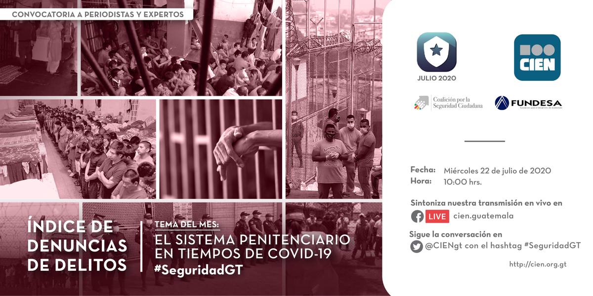Amigos periodistas y expertos en #SeguridadGT: miércoles 22 de julio es la presentación del Índice de Denuncias de Delitos - IDD y El Sistema Penitenciario en Tiempos de #COVID19. Puede sintonizar el Facebook Live cien.guatemala a las 10hrs.