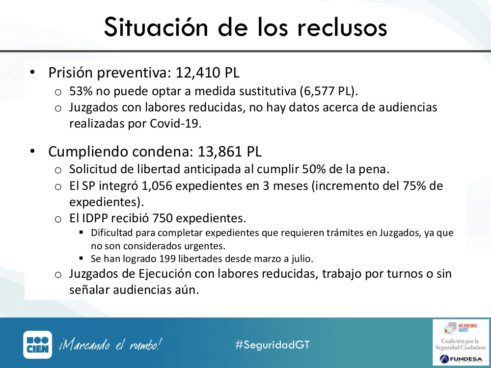 "Hay 13,861 personas que pueden solicitar libertad anticipada o redención de penas pues ya cumplieron el 50% de su pena, y el SP integró más de 1000 expedientes estos tres meses, pero el proceso es lento, debido a la lentitud en lo judicial" comparte @CorinneDedik en #SeguridadGTpic.twitter.com/VZ0npHNF3Z