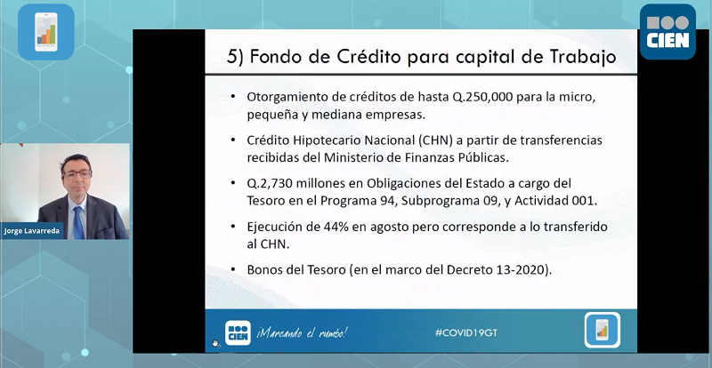 "La ejecución hasta agosto para el programa 5 es del 44% pero sólo muestra cuánto ha sido transferido al CHN y para conocer la ejecución, el CHN tiene la información" comparte @jlavarre "y se recomienda que el CHN reporte periódicamente sobre el mismo" #COVID19GTpic.twitter.com/pbfjhk8KDA