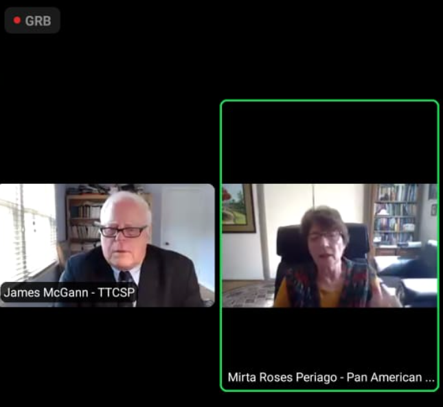 En el @TTCSP sobre los retos que enfrenta la región y los tanques de pensamiento, Mirta Roses Periago comparte que ya había habido advertencias sobre la posibilidad de pandemias como la actual pero la región no estaba preparada y debe actuar.pic.twitter.com/IhKEgnIQje